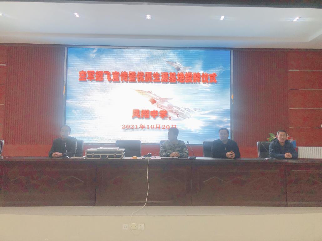 10月20日上午,空军招飞局兰州选拔中心副主任林传茂、教官张文锦一行在宝鸡市凤翔区考管中心主任冯景阳的陪同下先后来到凤翔中学、西街中学进行空军招飞政策宣讲工作,并为凤翔中学授予空军招飞优质生源中学匾牌,仪式由冯景阳同志主持。