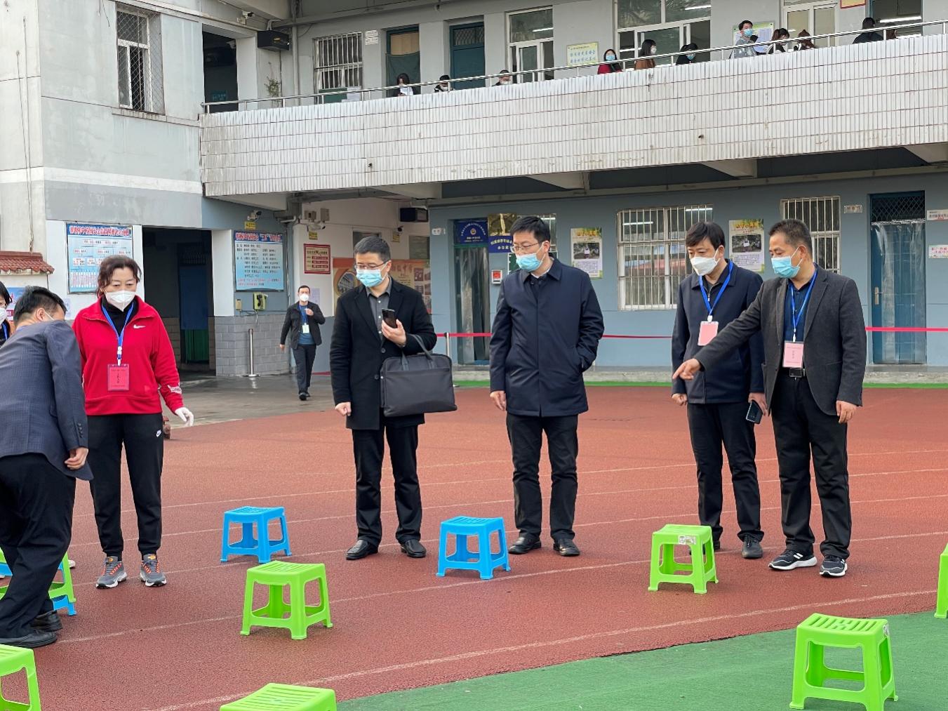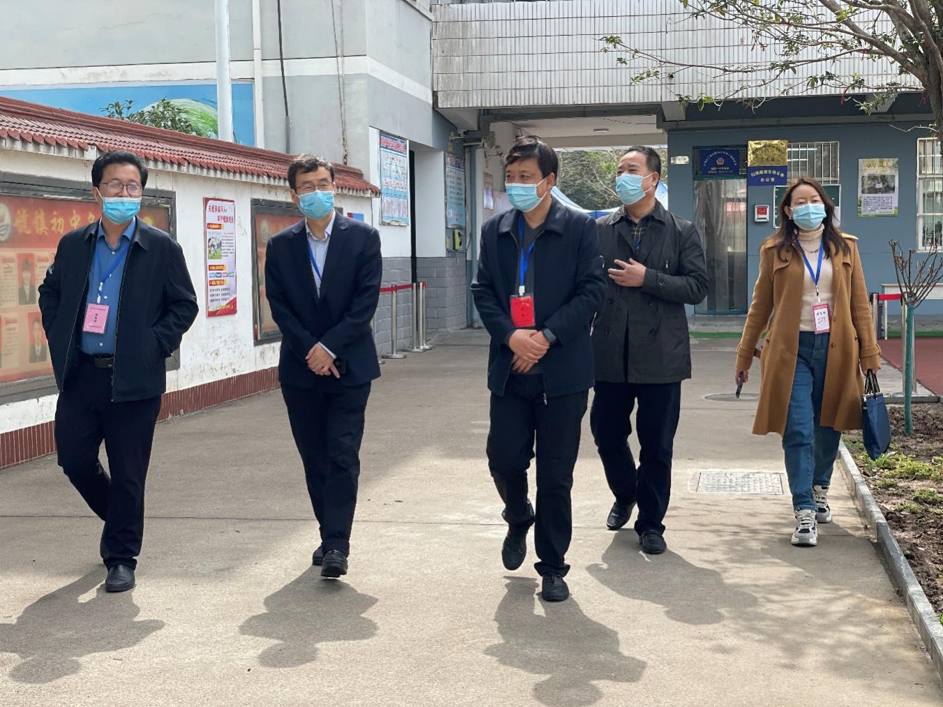 宝鸡市教育局副局长王建昌(左二)、市考管中心副主任段进平(右二)、陈仓区教育局局长王信(左一)在虢镇初中考点检查指导