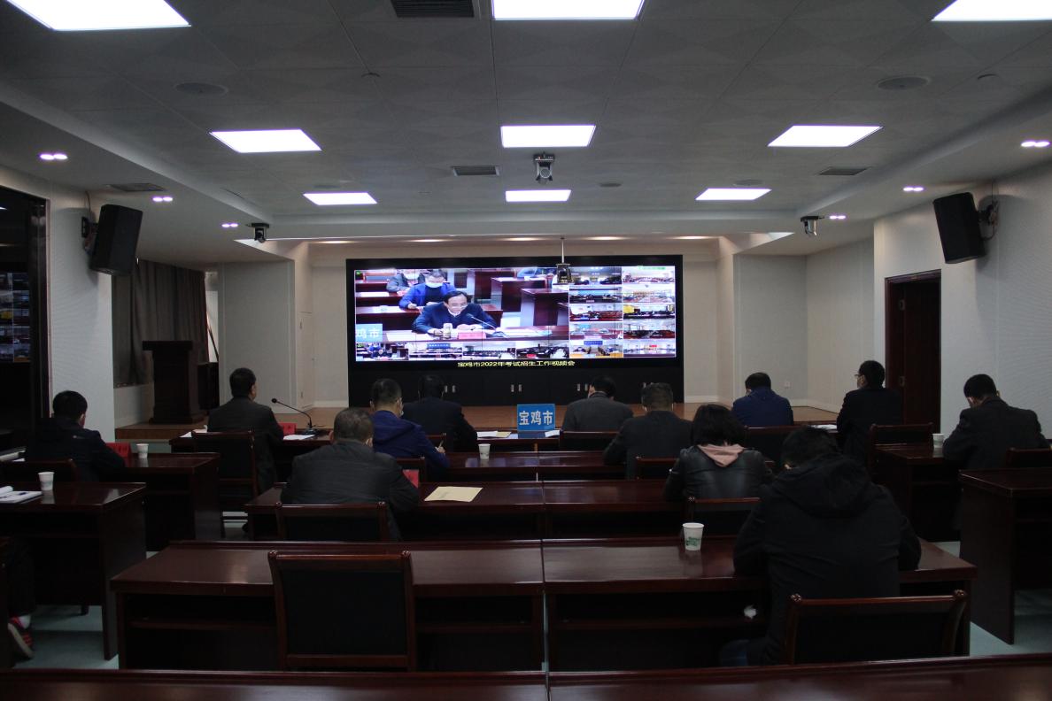 3月31日,宝鸡市召开2022年全市考试招生工作视频会,总结表彰2021年工作,安排部署全市2022年考试招生工作。市教育局党组成员、副局长王伟波在主会场出席会议并讲话,市考试管理中心党支部书记、主任杨新科做工作报告,宝鸡市考试管理中心全体人员参加会议,各县区考试管理机构及工作人员在各自分会场参会。会议由市考试管理中心副主任段进平主持。