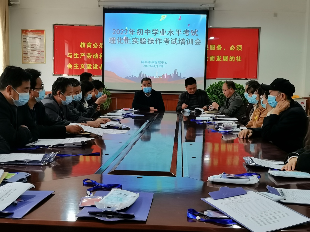 4月20日,宝鸡市陇县考试管理中心组织召开了初中学业水平考试理化生实验操作考试培训会。18名监考老师、三名督查员以及考管中心全体人员参加了会议。