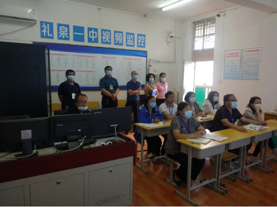 市县领导查看高考外语听力考试模拟演练一中考点视频监控系统