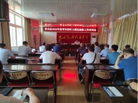 为了做好2022年陕西省高考外语听力模拟演练,武功县教育局在东二楼会议室召开听力演练工作培训会,各考点主考、常务副主考、后勤副主考、防疫副主考、各考点主管考务、防疫的负责人及广播播放员参会。教育局副局长刘改军主持并讲话。