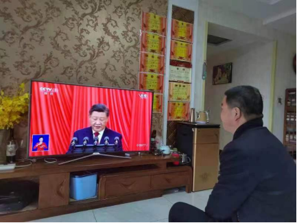 党员干部通过电视收听收看党的二十大开幕直播盛况