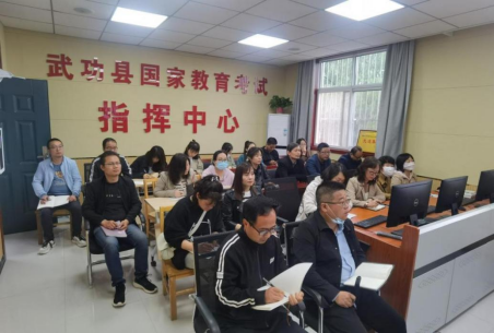 5月10日咸阳市武功县考试管理中心组织各高、职中信息技术专任教师、考点主考、副主考、系统管理员和机考平台操作人员及相关考务人员,准时参加了“2023年陕西省普通高中学业水平合格性考试信息技术机考平台使用培训视频会议”。视频会议前考管中心主任侯军辉强调会议纪律,并提出相关要求。为确保培训顺利,信息管理员王龙老师提前与省市联调视频设备。