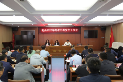 5月23日,咸阳市乾县召开2023年高考中考安全工作会议,贯彻落实教育部、陕西省2023年普通高校招生考试安全工作视频会议和咸阳市2023年高考中考安全工作电视电话会议精神,全面安排部署乾县考区高考中考安全工作。县招委会成员单位负责人,高考、中考考点主考,高职中校长,移动公司、联通公司负责人,选聘高考监考的城区初中校长,招生办有关同志参加会议。县招委会主任、副县长程妮参加会议并讲话。