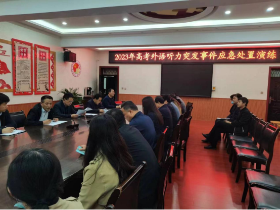 5月28日下午,咸阳市永寿县组织县招生办及考点学校二十多人,进行外语听力考试突发事件应急处置演练工作。