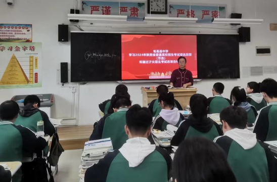 为全面做好2024年高考报名工作,帮助师生更好的了解和掌握高考政策,高考报名条件、办法和政策规定,9月28日,咸阳市旬邑县中学召开了2024年高考政策宣讲会。会议由张满仓书记主持,全体班主任及学生参加。