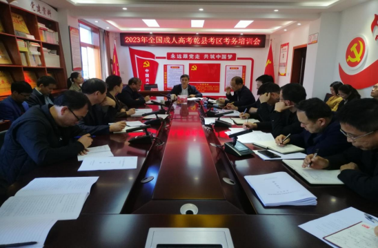 10月16日下午,咸阳市乾县召开2023年全国成人高考考区考务培训会。县教育局相关领导,县纪委监委驻教育局纪检组领导,各考点主考、副主考、保密负责人、考务负责人和视频监考负责人,花口初中、长义初中校长及监考带队副校长,县招生办相关人员参加会议。县教育局党委书记、局长侯佼出席会议并讲话。