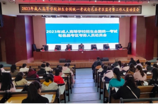 10月18日,召开2023年全国成人高校招生考试旬邑县考区主考、副主考及考务人员培训会,确保旬邑县中学考点707名专升本考生考试顺利、平稳、安全进行。