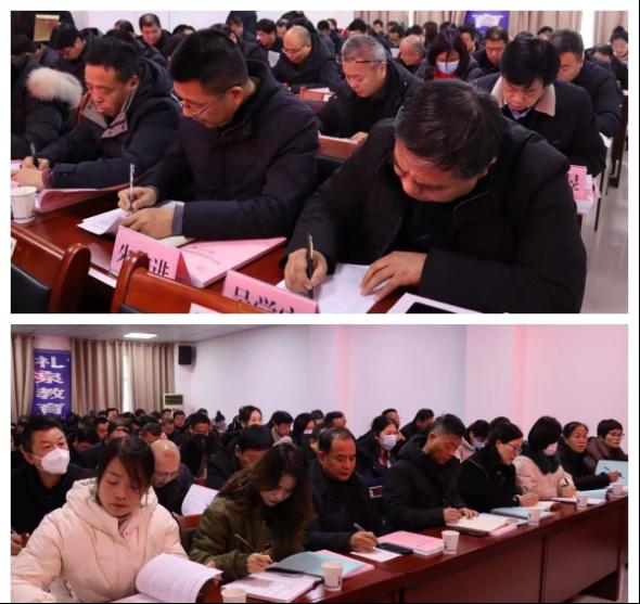 县教育局局长赵宝泉从党的建设不断加强,主题教育把航定向,教育生态风清气正,教育管理提质增效,意识形态培根铸魂,法治建设护航发展等六个方面全面总结了2023年教育工作取得的成绩,并结合市县工作要求,提出了今后重点要抓好的工作任务。
