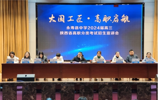 为了进一步宣传高职单招政策,提高学生及家长对高职教育的认识,让学生更好地找到自己的学习平台。3月1日下午,咸阳市永寿县中学召开了高职单招宣传动员会。参加会议的有永寿中学领导,各高职院校代表,高三部分学生及家长。