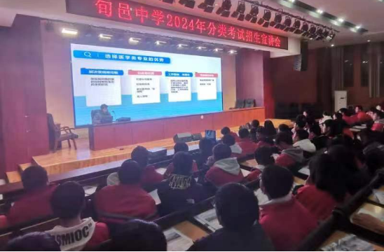 陕西省2024年高职院校分类考试招生工作已经拉开帷幕,根据统一安排,考生申请将于3月15-18日在网上进行,3月23-24日在申报学校参加考试。为使春季分类考试有序开展,保证学生充分了解相关院校办学特色和专业优势,增强选择的目的性和针对性,科学合理选择适合自己的院校和专业,咸阳市旬邑县多措并举、多点发力,积极有效开展分类考试招生宣传工作。