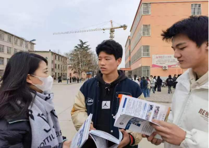 三是“请高校”入校进行宣传。为加强学生安全管理,邀请省级示范类高职院校入校进行宣传。召开宣讲大会,学生和家长共同参与。各院校以分摊扎点的形式介绍学校及专业,发放宣传册,并现场解答家长疑惑,帮助家长更加理性地做出选择。