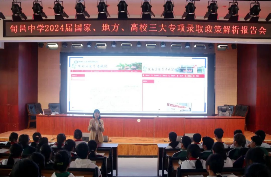 为使高三学生更好地了解国家、地方、高校三大专项录取政策,增大农村部分学生上重点大学的机会,4月11日下午,咸阳市旬邑县中学特邀请博恩生涯规划研究院苟珊珊老师为高三学子详细解读了三大专项计划招生政策。
