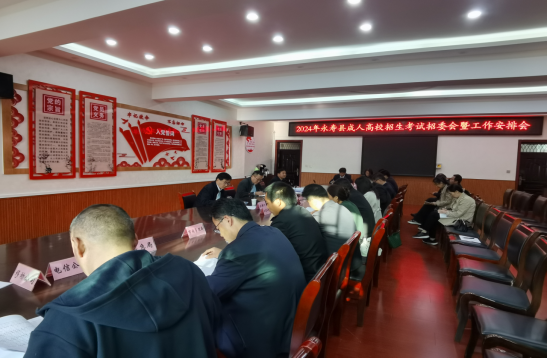 10月14日下午,咸阳市永寿县在永寿中学召开2024年成人高校招生招委会暨工作安排会。招委会部门分管领导,教育局局长、分管局长,招生办全体同志参加会议。县政府副县长王宁同志出席并讲话。