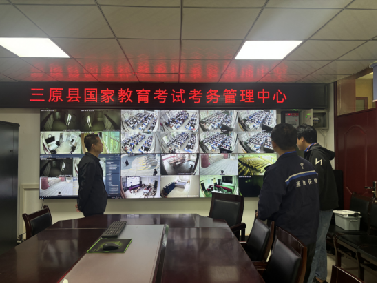 为了确保成考考试期间光纤线路不出故障,信号平稳运行,2024年10月16日上午,咸阳市三原县招委会成员单位三原县电信公司派技术人员对考试管理中心、考区两个考点,光纤线路、视频接收信号、带宽等设备进行检查维护。