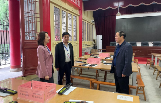 在县一中、县二中考点,程妮一行认真查看了考点设施与环境情况,听取了考点主考组考工作汇报,详细了解了考场分布、考务组织、服务保障、应急处置等工作情况,并对考务工作做了具体安排。