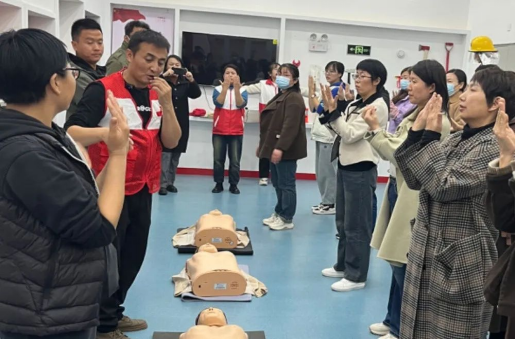 为普及应急救护基本知识,增强教师应急救护知识技能,县红十字会在东郊中学举办“应急救护”培训活动。