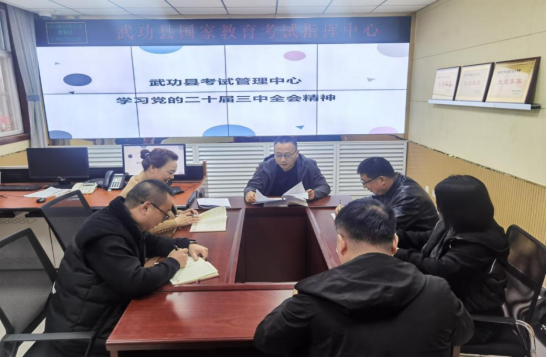 11月初,武功县教育局组织全体人员集体学习党的二十届三中全会精神。11月14日下午,咸阳市武功县考试管理中心主任侯军辉同志带领科室党员同志学习领会重要内容和指示精神,并要求大家结合自身和工作实际进行研讨。