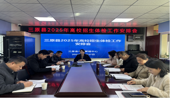 为确保咸阳市三原县2025年高考体检工作安全、平稳、顺利进行,11月27日下午,三原县考试管理中心顺利召开了2025年高校体检工作安排会。各高中、职校,高三年级主管领导及体检负责人及考试管理中心全体人员参加了此次会议。