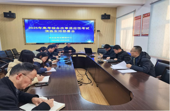 新高考变化大,改革性强。为进一步统一思想、提高认识,确保2025年陕西省高考综合改革适应性演练平稳、顺利进行,咸阳市武功县提早着手,加强组织领导,12月25日上午在县教育局南二楼召开2025年高考综合改革适应性考试演练安排部署会,精心准备适应性演练各项工作。