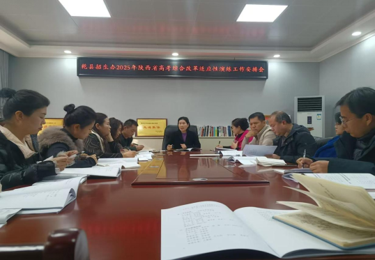 12月30日上午,咸阳市乾县招生办召开2025年陕西省高考综合改革适应性演练工作安排会,会议由招生办党委书记胡婕主持,招生办全体同志参与。