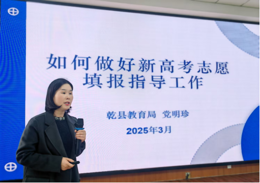 3月5日下午,咸阳市乾县教育局召开2025年新高考志愿填报培训会,解读《2025年陕西省普通高校招生考试和录取工作实施方案》,开展志愿填报指导。全县80余名高三年级班主任、部分家长参加了培训会。会议由招生办副主任王琳琼主持,由招生办主任党明珍主讲。