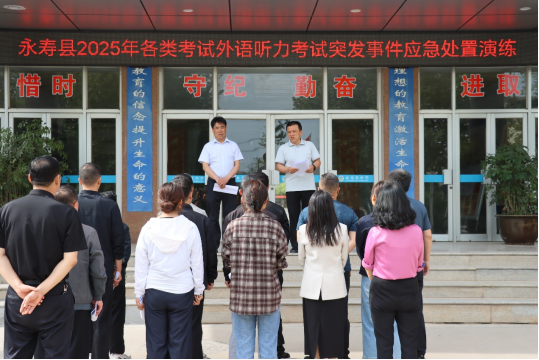 考试安全是教育公平的重要保障,而外语听力考试的顺利进行更是其中关键一环。为充分保障广大考生在外语听力考试中的利益,切实提升考点应对外语听力考试突发事件的应急处置能力,真正做到防患于未然,确保考试工作能够安全有序进行,4月25日,咸阳市永寿县组织进行2025年各类考试外语听力考试突发事件应急处置演练。