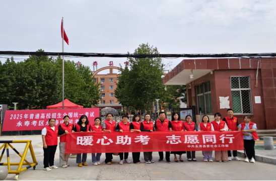 永寿县委社会工作部、永寿县信用联社等相关部门,相关爱心企业及爱心人士也积极参与高考服务工作,他们在考点周边设置了爱心服务点,为考生提供矿泉水、免费接送等服务,全力营造“温馨高考”的良好氛围。