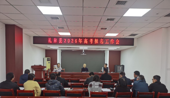 为贯彻落实省市2026年高考报名文件和会议精神,切实做好2026年高考报名工作,10月27日下午,咸阳市礼泉县在县教育局四楼会议室召开礼泉县2026年高考报名工作会。各高中、职教中心校长、高三分管校长、年级主任、考务员、信息员、头像采集人员,县教育局教育科负责同志,县考管中心全体人员参加了会议。会议由县考试管理中心主任陈大伟主持。县教育局副局长李国宁出席会议并讲话。