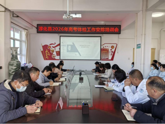 12月15日下午,咸阳市淳化县2026年高考体检工作安排培训会议在县医院门诊六楼小会议室召开。县医院副院长张周锁主持会议,医院体检相关人员、安保、县教育考试中心工作人员、淳化中学及职教中心分管负责同志、广州像素公司技术人员等参会,共同部署推进全县高考体检各项工作。