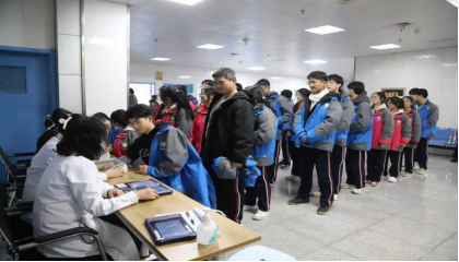 多方协同发力,现场秩序井然。为减少考生候检时间、提升体检体验,本次体检采用“分批次错峰、分项目流水”的参检模式,科学规划体检动线,设置清晰的分区导引标识,实现眼科、内科、外科、放射科等项目的高效流转。教育考试中心工作人员全程驻点跟踪,主动对接体检机构与各高中学校,实时掌握体检进度,保障各环节无缝对接;各高中学校由主管校长带队、班主任全程陪同,协助维持现场秩序、核对考生信息;市人民医院选派业务精湛的骨干医护组建专业团队,提前开展业务培训,熟练掌握无纸化体检系统操作规范与体检标准。医护人员耐心细致地为考生检查身体、记录数据,切实保障了高考体检工作的规范、高效、有序完成。