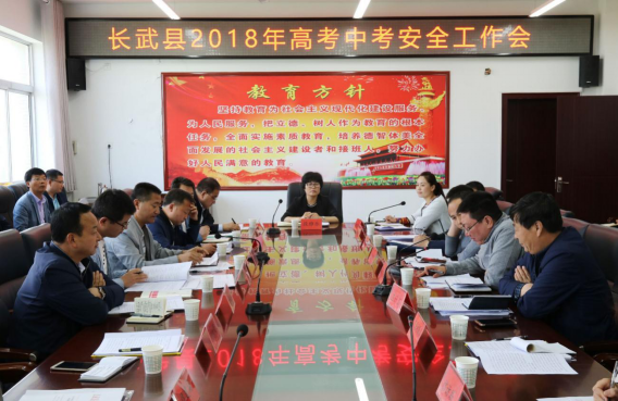会议还印发了《2018年长武县国家教育考试突发事件应急处置预案》、《长武县2018年普通高考环境综合整治工作方案》和《关于做好2018年高考中考安全工作的通知》等文件。长武县保密局、公安局等7个招委会成员单位负责同志就两考安全工作分别作了表态发言。