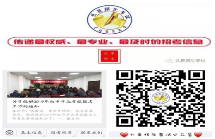 搭建桥梁,做细沟通衔接工作。建立了 “礼泉招生考试”微信公众号,及时发布初中学业考试网上报名的相关事项,以便广大考生和家长了解初中学业考试的资讯。