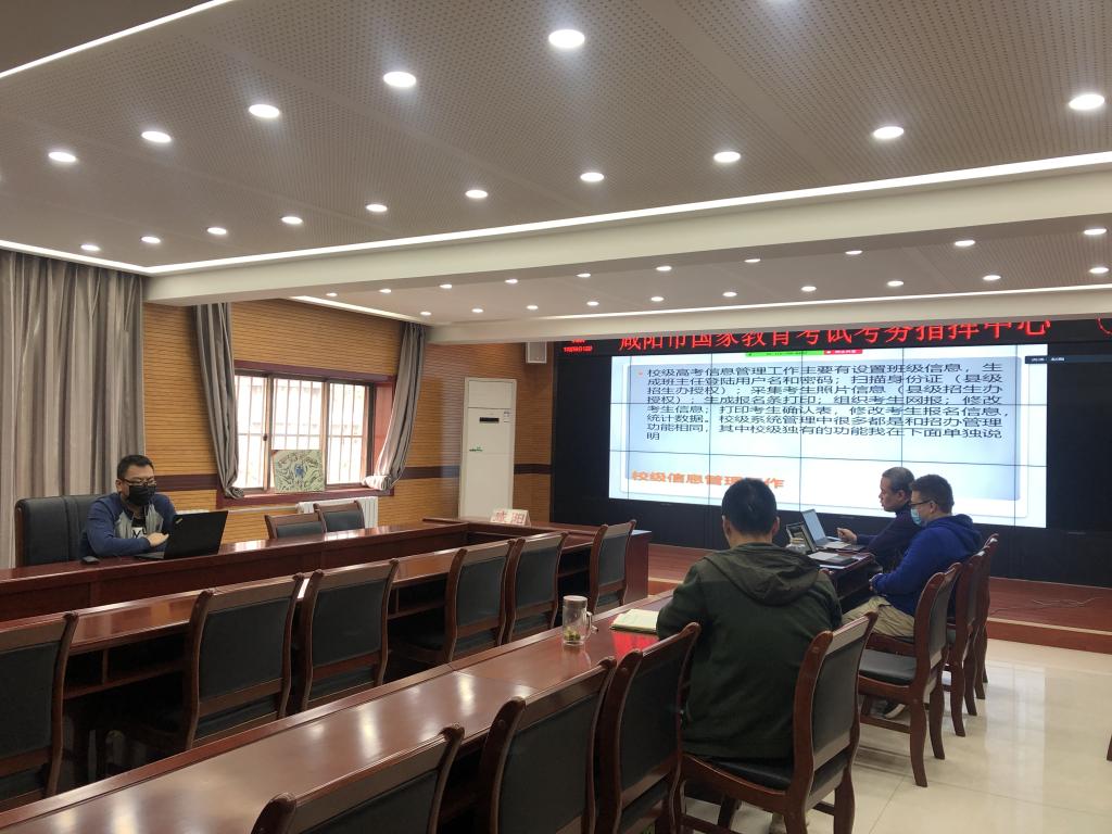 为提升咸阳全市高考县、校两级信息管理人员业务能力,提高信息管理准确性和安全性,3月26日,咸阳市考试管理中心信息科利用“瞩目系统”组织开展了报名系统网络视频培训,县、校信息管理员共50多人参加了会议。