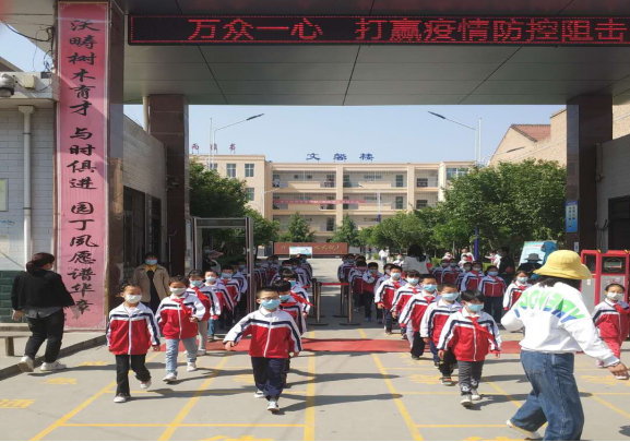 4月27日上午学生报到,学校门口设置了四个通道,并要求学生佩戴口罩,保持一米间距,有序进入检测通道,分年级错时段逐个测量体温方可进入校园。进入学校后,各班系统的对学生进行了疫情防控知识宣传教育,告知学生七步洗手法、错峰活动、有序离校等一系列安排与要求,以疫情防控、复课学习、心理疏导等为主要内容,引导学生以积极、乐观、自信、阳光的心态迎接新学期的到来,齐心抗“疫”,共克时艰。下午逐级逐班对学生进行错时上下学、有序测温、室内外早读、课间活动、文明有序如厕流程等防疫模拟演练,整个过程,秩序井然,有条不紊。通过学校领导和老师的齐心协力,为学生筑起一道安全健康的防疫墙。