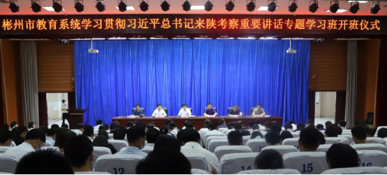 5月27日下午,咸阳市彬州市教育系统学习贯彻习近平总书记来陕考察重要讲话精神专题学习班在教育局二楼会议室开班。