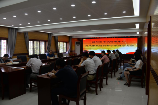 6月5日,咸阳市考试管理中心在全体同志中组织开展党风廉政建设警示教育活动。活动过程中,全体同志集体学习了《习近平新时代中国特色社会主义思想学习纲要》有关篇目和咸阳市纪委七届五次全体会议精神,并结合中央、省、市纪委监委通报的39起典型案例开展警示教育,统筹安排党风廉政建设工作。