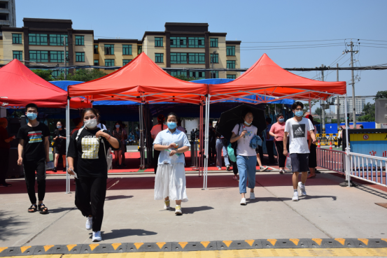 7月7日,为期两天的高考拉开了序幕。兴平市3830名(共参加考试3938人,单招类108人在武功参加考试)高考考生将迎接人生第一次大考。今年考点现场也与往年不同,考场门前设置了体温检测点,考生需要佩戴口罩,检测体温正常才能入场。