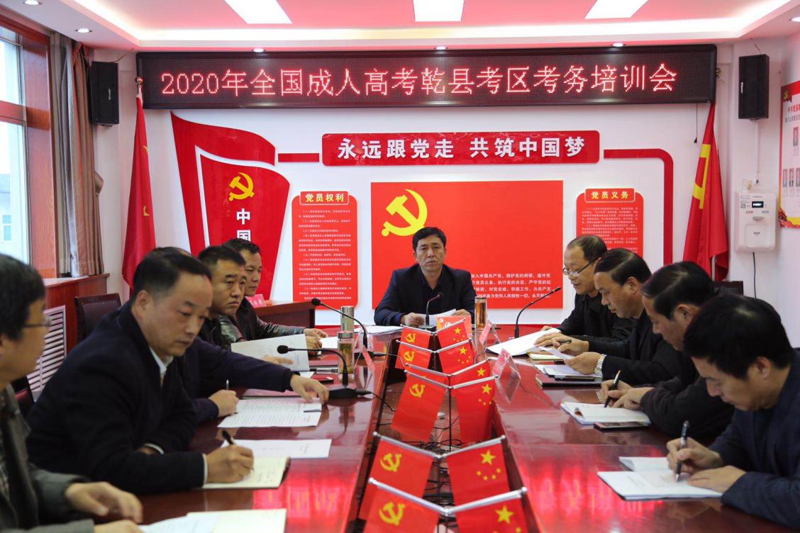 10月15日下午,咸阳市乾县召开2020年成人高校招生全国统一考试考务培训会。县教育局相关领导、纪委监委驻教育局纪监组、各考点主考、副主考、考务负责人、保密负责人、视频监考负责人等和招生办领导及相关同志参加会议。