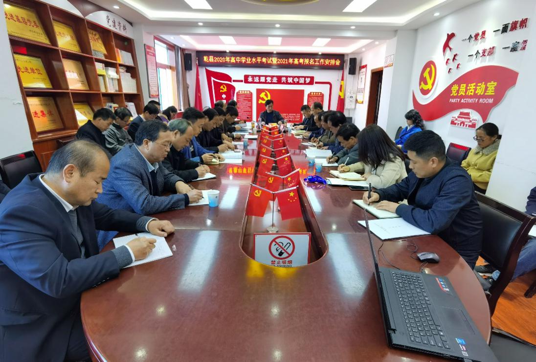 11月9日,咸阳市乾县召开2020年学考考务和2021年高考报名工作安排会,安排部署2020年陕西省高中学业水平考试考务和2021年普通高校招生考试报名工作。县教育局领导、县纪委监委派驻教育局纪检监察组成员、各考点主考和有关负责人、高职中和县招生办相关人员参加会议。