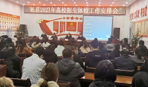 12月25日,咸阳市乾县召开2021年高校招生体检工作安排会,安排部署2021年普通高校招生体检工作,县教育局领导、咸阳市考试管理中心高考负责同志、乾县人民医院领导及参加体检医生工作人员、县招生办领导及高考组同志共100余人参加会议。