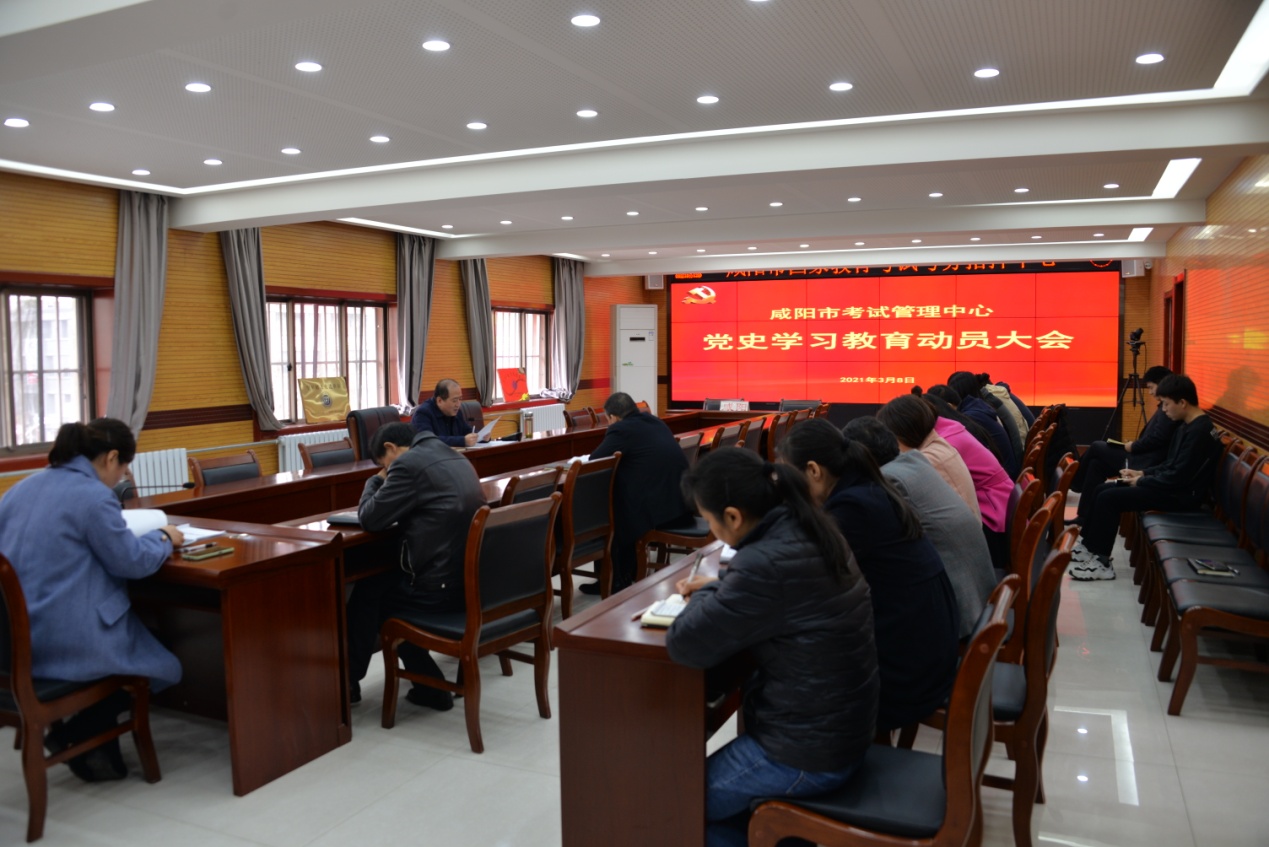 为深入学习贯彻习近平总书记在全国党史学习教育动员大会上的重要讲话精神,全面落实党史学习教育部署要求,近日,咸阳市考试管理中心召开党史学习教育动员大会,对单位党史学习教育工作进行安排部署。机关全体同志参加会议。