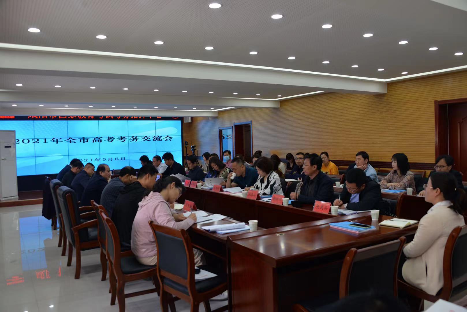 为高质量做好2021年高考考务工作,实现平安考试、健康考试、温馨考试的目标,5月6日上午,咸阳市考试管理中心组织召开全市高考考务交流会。会议由市考试管理中心主任来志宏主持,13个县市区招生办主任、高考考务负责人、市考试管理中心全体人员参加会议。