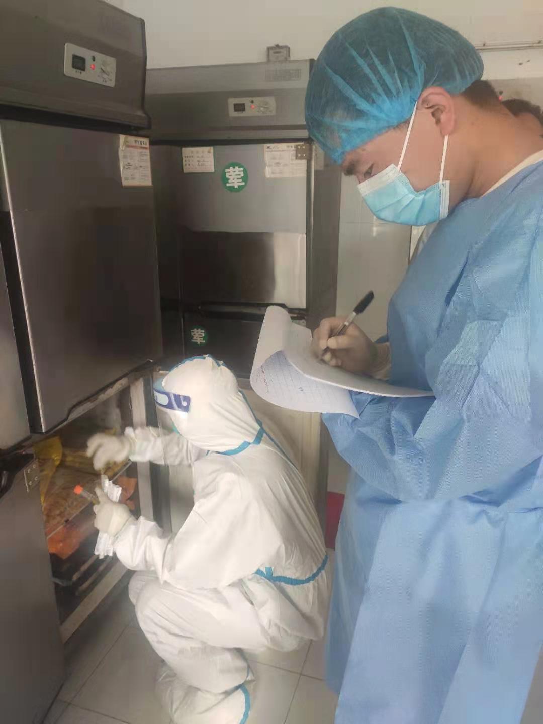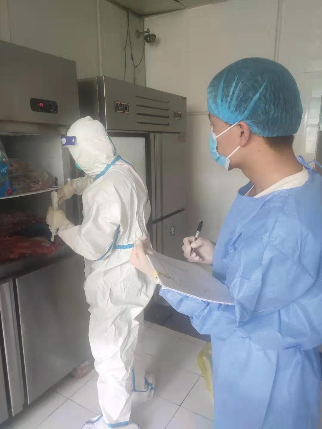 5月28日旬邑县市场监督管理局、县疾控中心考前对旬邑县中学考点超市商品外包装和考点食堂冷链食品及其存储、加工等场所开展抽样核酸检测,确保考点食品安全。