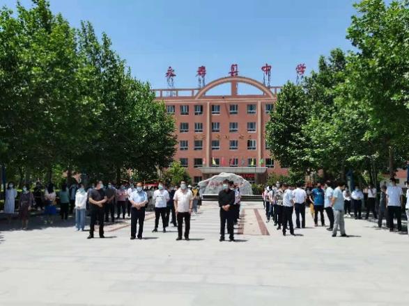 5月31日下午13时30分,在永寿县招委会的组织下,县卫健局、疾控中心委派医护人员来到永寿中学进行疫情防控演练,为参加2021年高考考生和全体涉考工作人员的生命健康安全筑牢了安全防线。