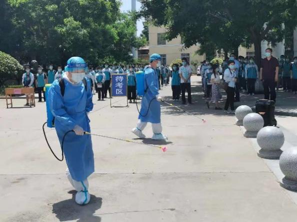 演练工作从四个场景分别进行:一是场地消杀;二是考生进场;三是侯考区安全应急场景;四是考场内应急场景。