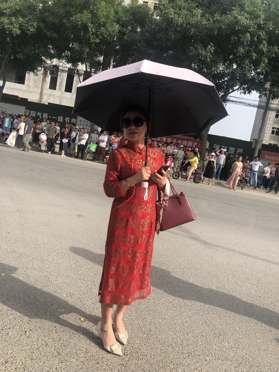 妈妈们穿上新购买的红色旗袍