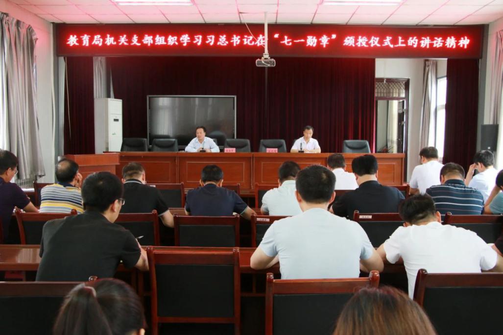 7月16日,旬邑县县教育局机关支部组织学习习近平总书记在“七一勋章”颁授仪式和庆祝中国共产党成立100周年大会上的讲话精神,局机关全体党员干部参加了会议。