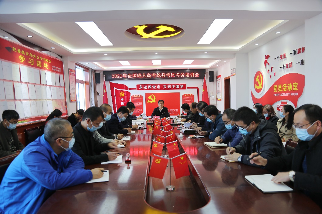 10月18日下午,咸阳市乾县召开2021年全国成人高校招生考试考区考务培训会,局全体领导,乾县一中、二中考点主考、副主考、考务负责人、保密负责人、视频监考负责人、抽调监考学校负责人、县纪委监委驻教育局纪监组、招生办相关同志参加会议。